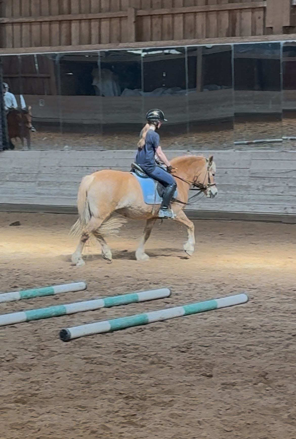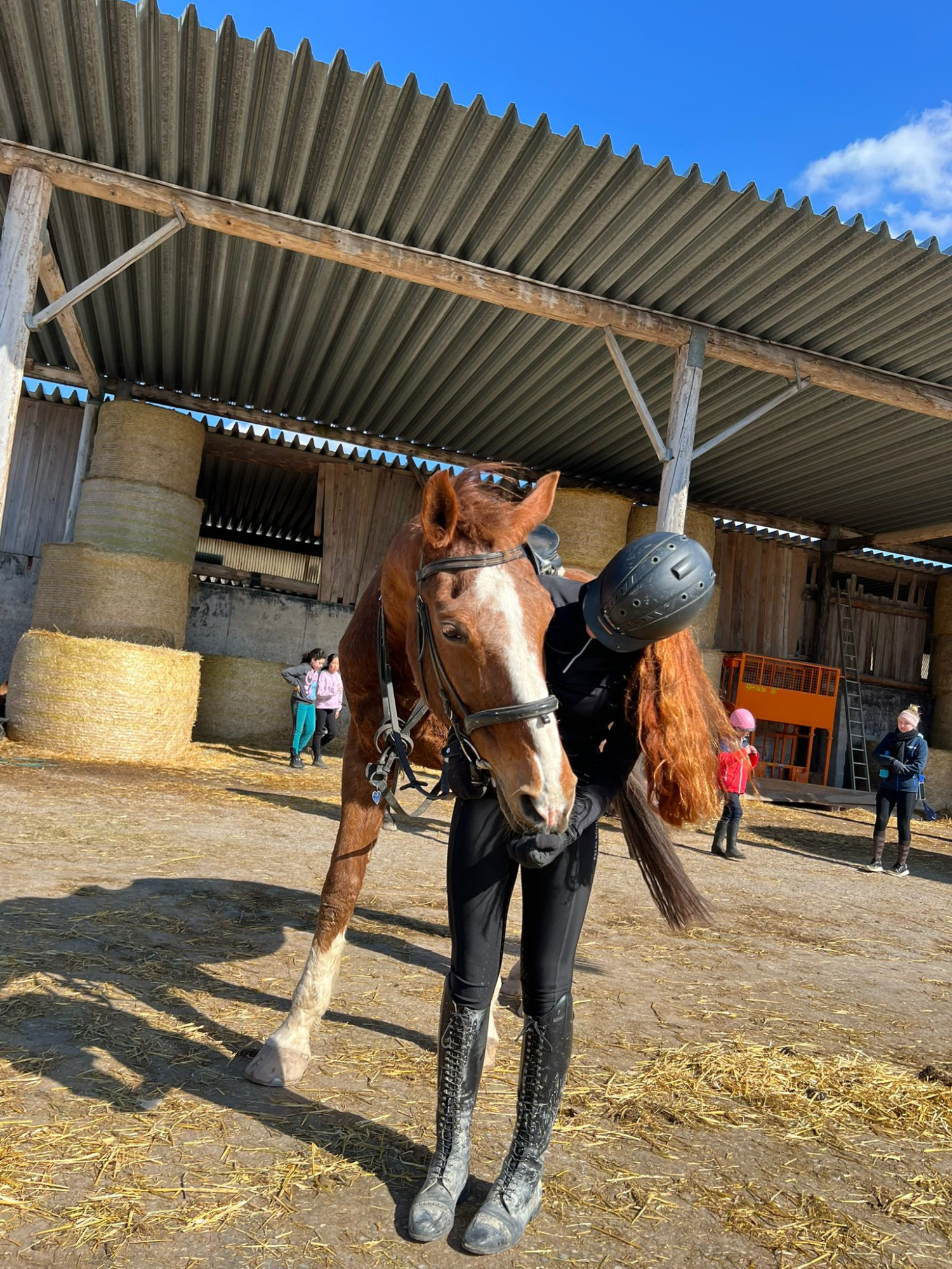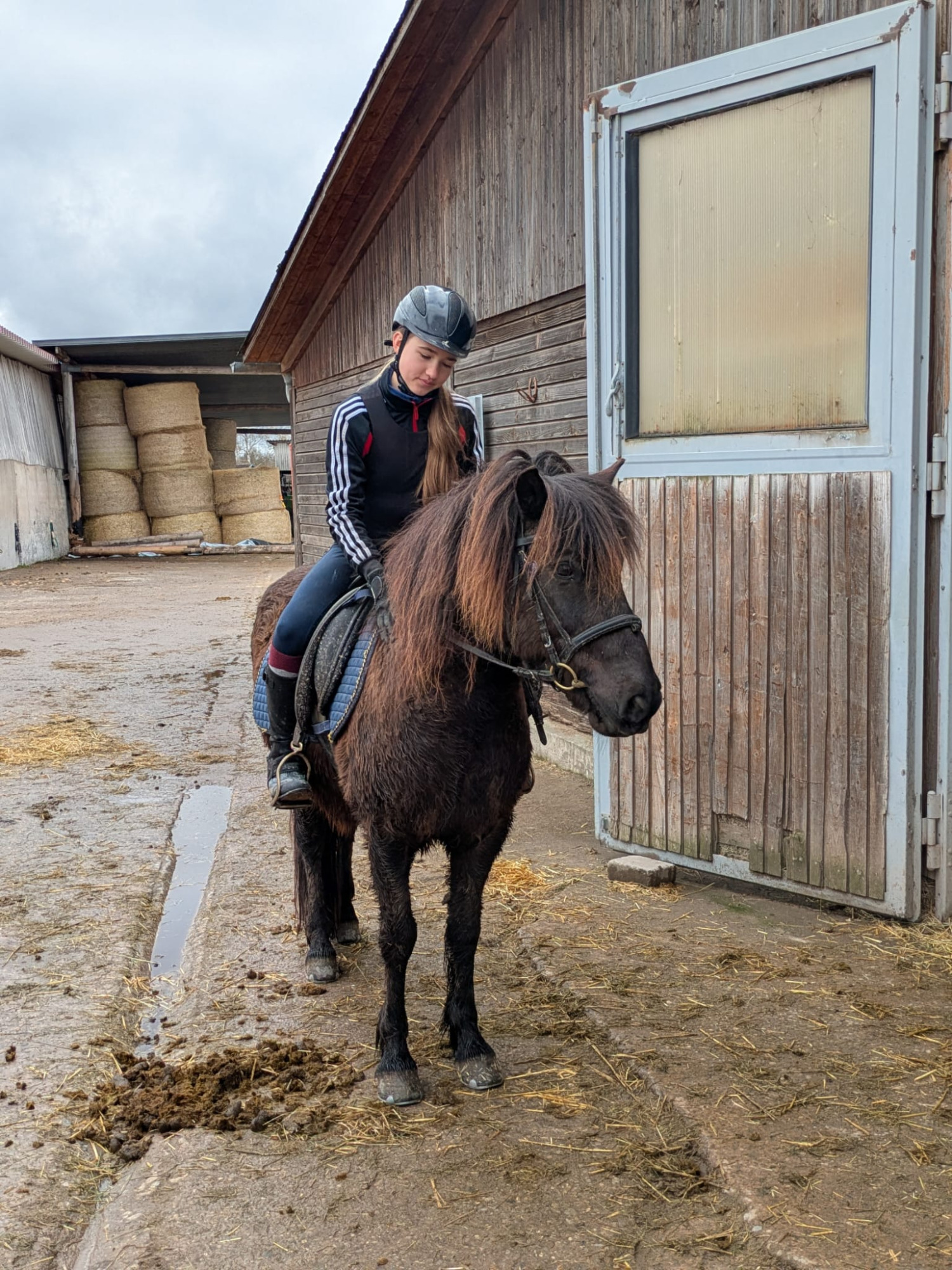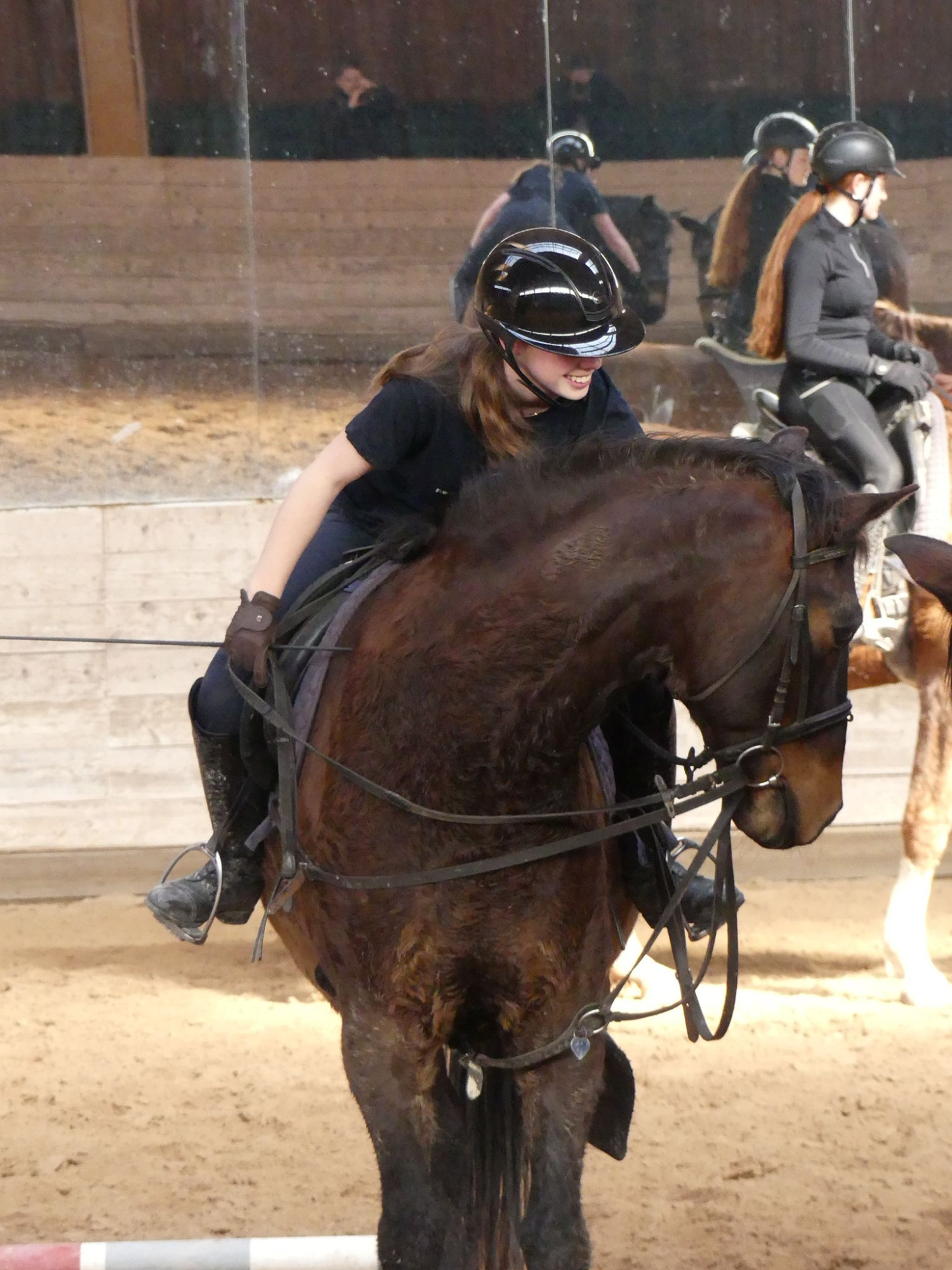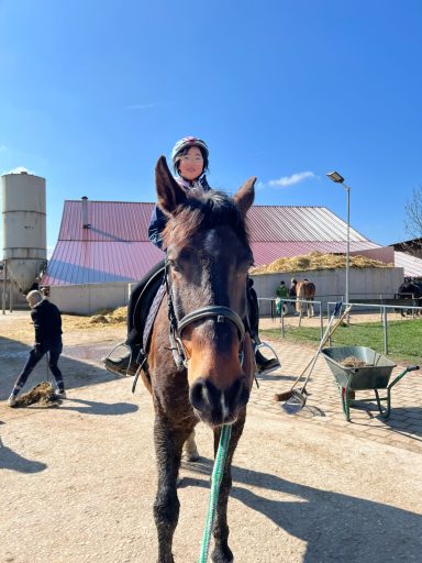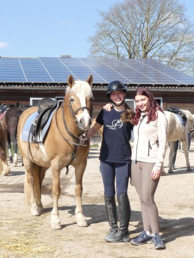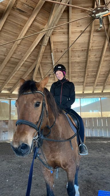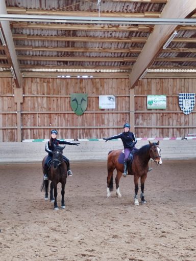 Die Longe um 9:00 Uhr auf Äppi verlief ebenfalls ohne Probleme. Mit Hilfe der Sitzlonge haben wir gezielt am korrekten Sitz gearbeitet. Das habt ihr gut gemacht – weiter so!