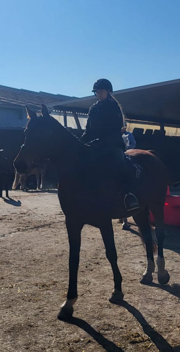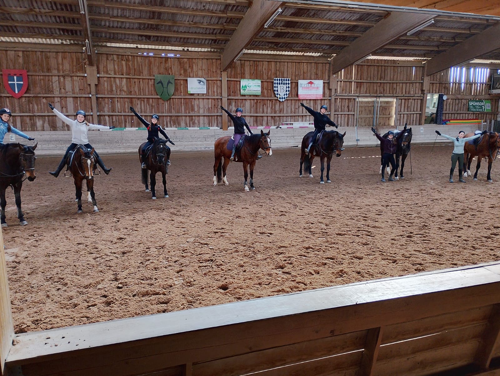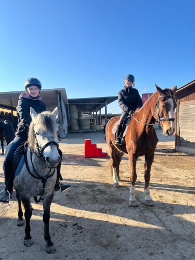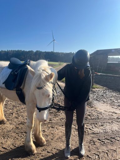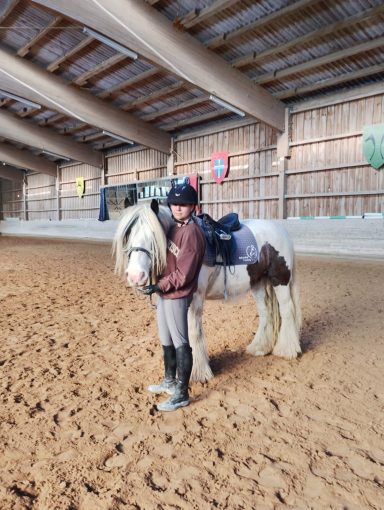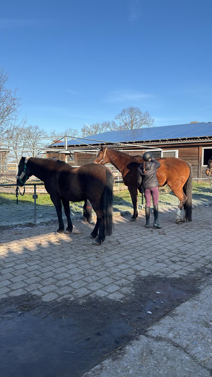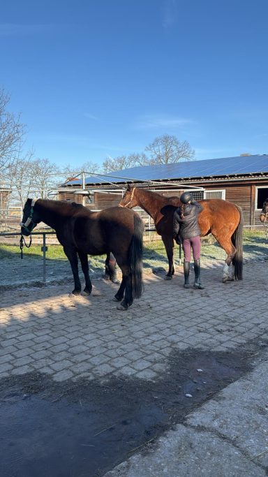 Die Longenstunde um 10 Uhr auf Nils verlief sehr gut. Die Kinder haben erfolgreich Schritt-Trab-Übergänge geübt. Besonders wichtig war uns dabei, dass sie unabhängig von den Zügeln durchparieren konnten – das haben alle wirklich toll umgesetzt. Weiter so!