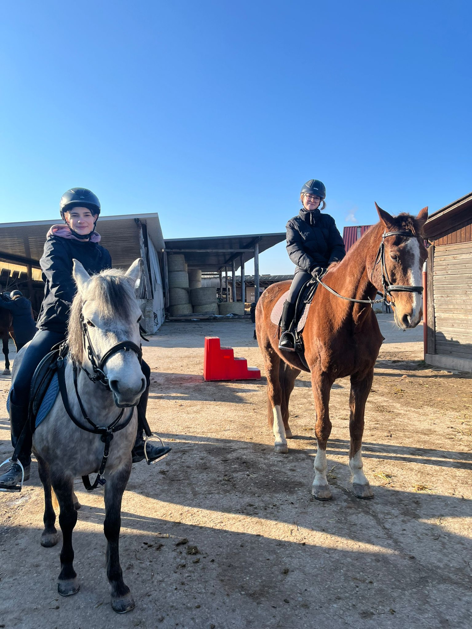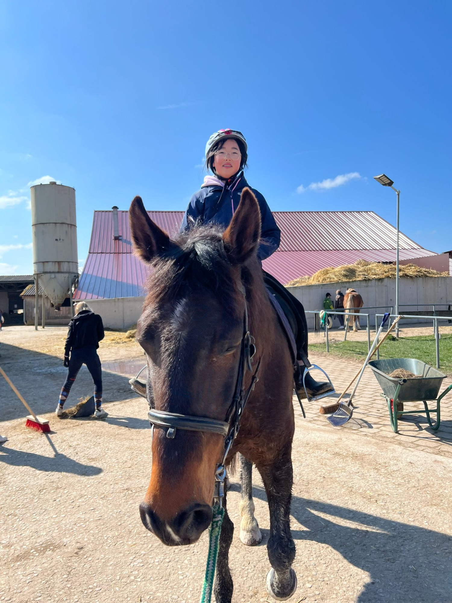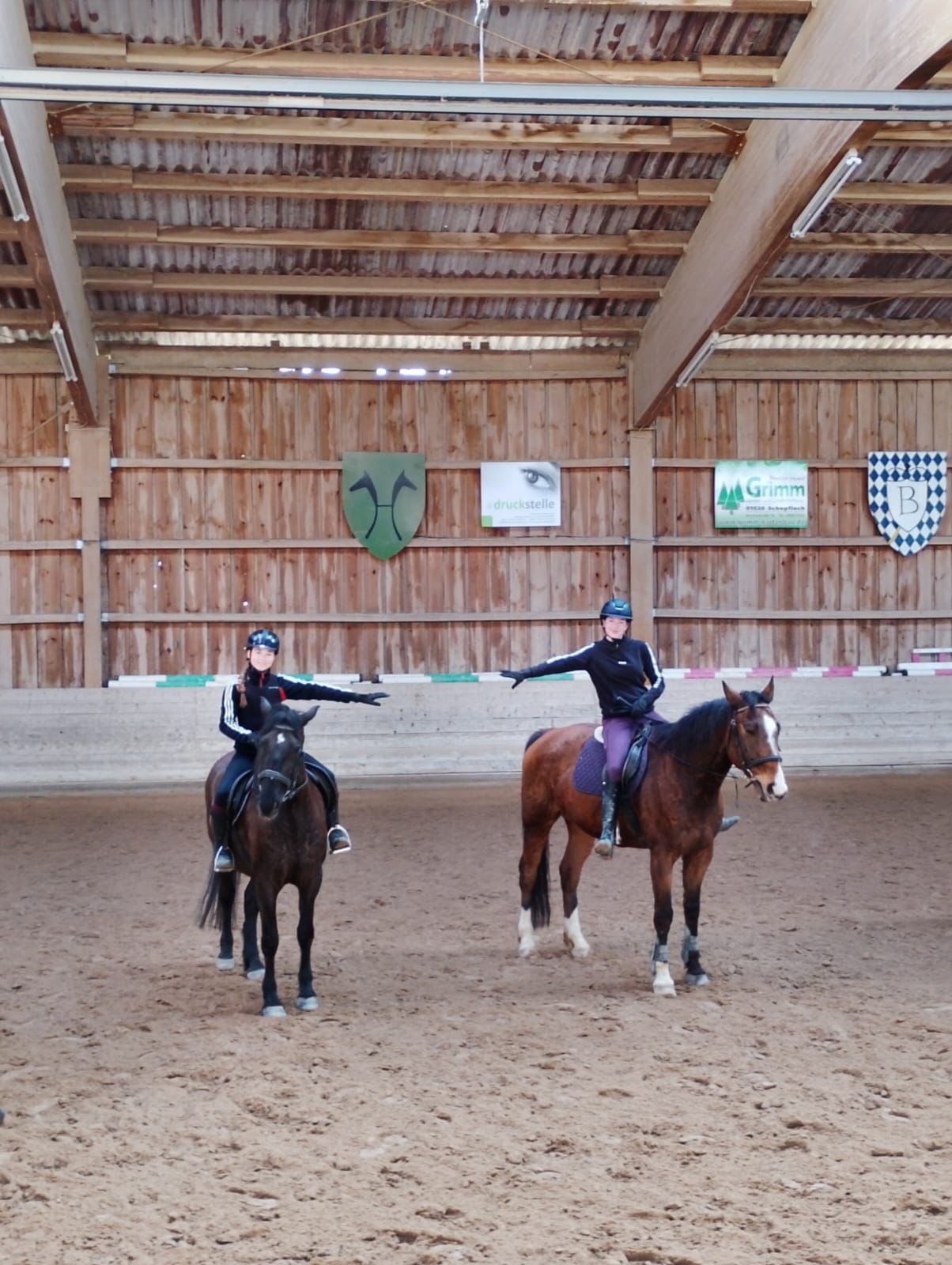 Die Longenstunde um 10 Uhr auf Nils verlief sehr gut. Die Kinder haben erfolgreich Schritt-Trab-Übergänge geübt. Besonders wichtig war uns dabei, dass sie unabhängig von den Zügeln durchparieren konnten – das haben alle wirklich toll umgesetzt. Weiter so!