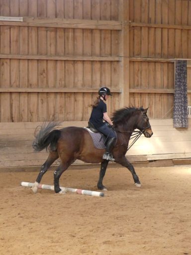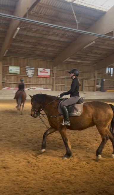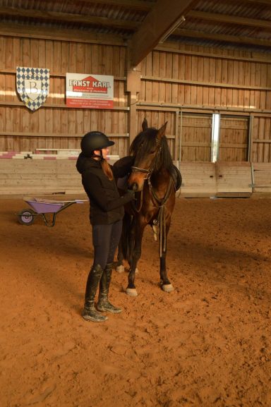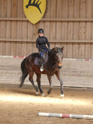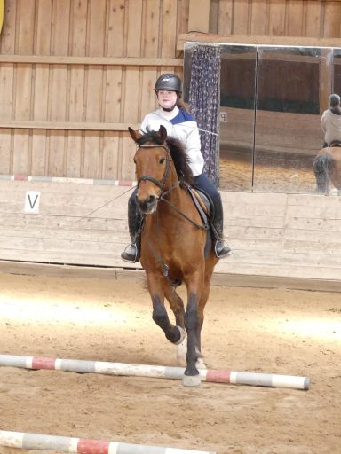 Die Longe um 9 Uhr auf Bella nutzte die Zeit für freies Reiten. Dabei konnten einige Hufschlagfiguren erfolgreich geritten werden. Sehr gut – weiter so!