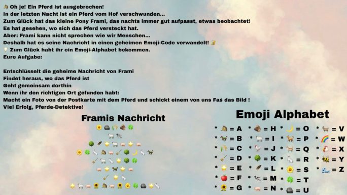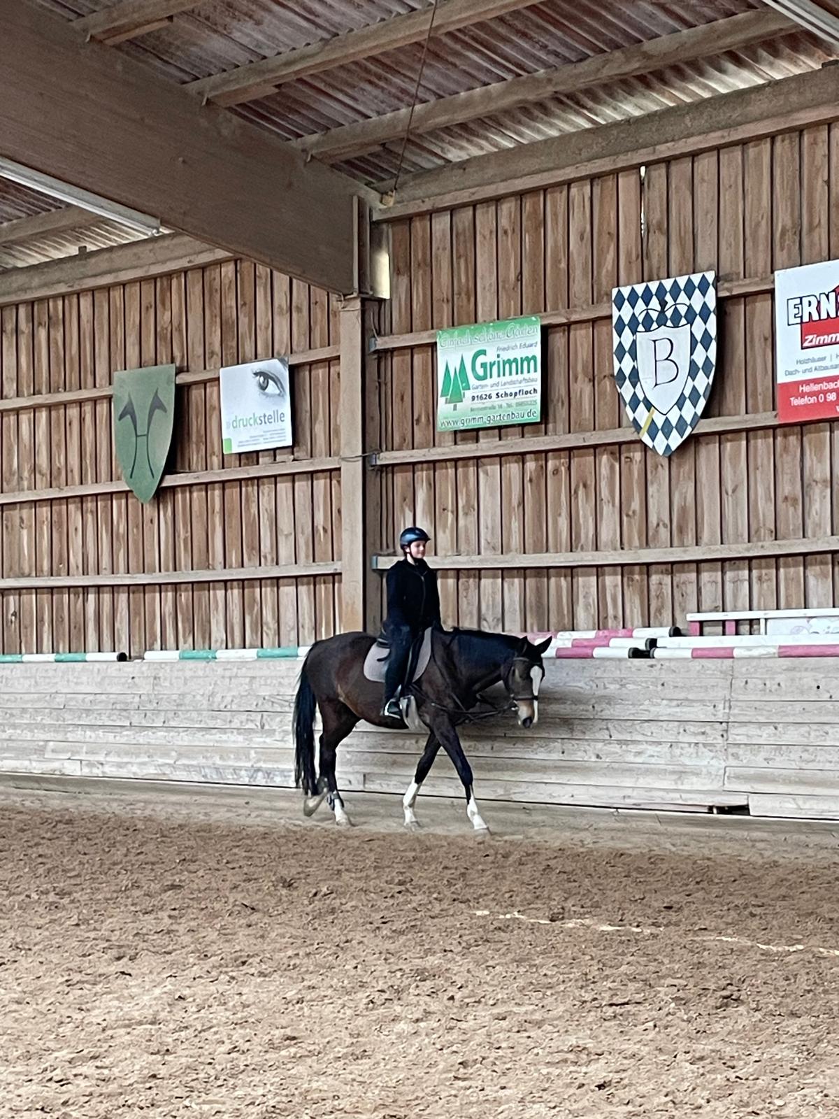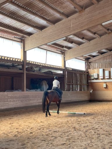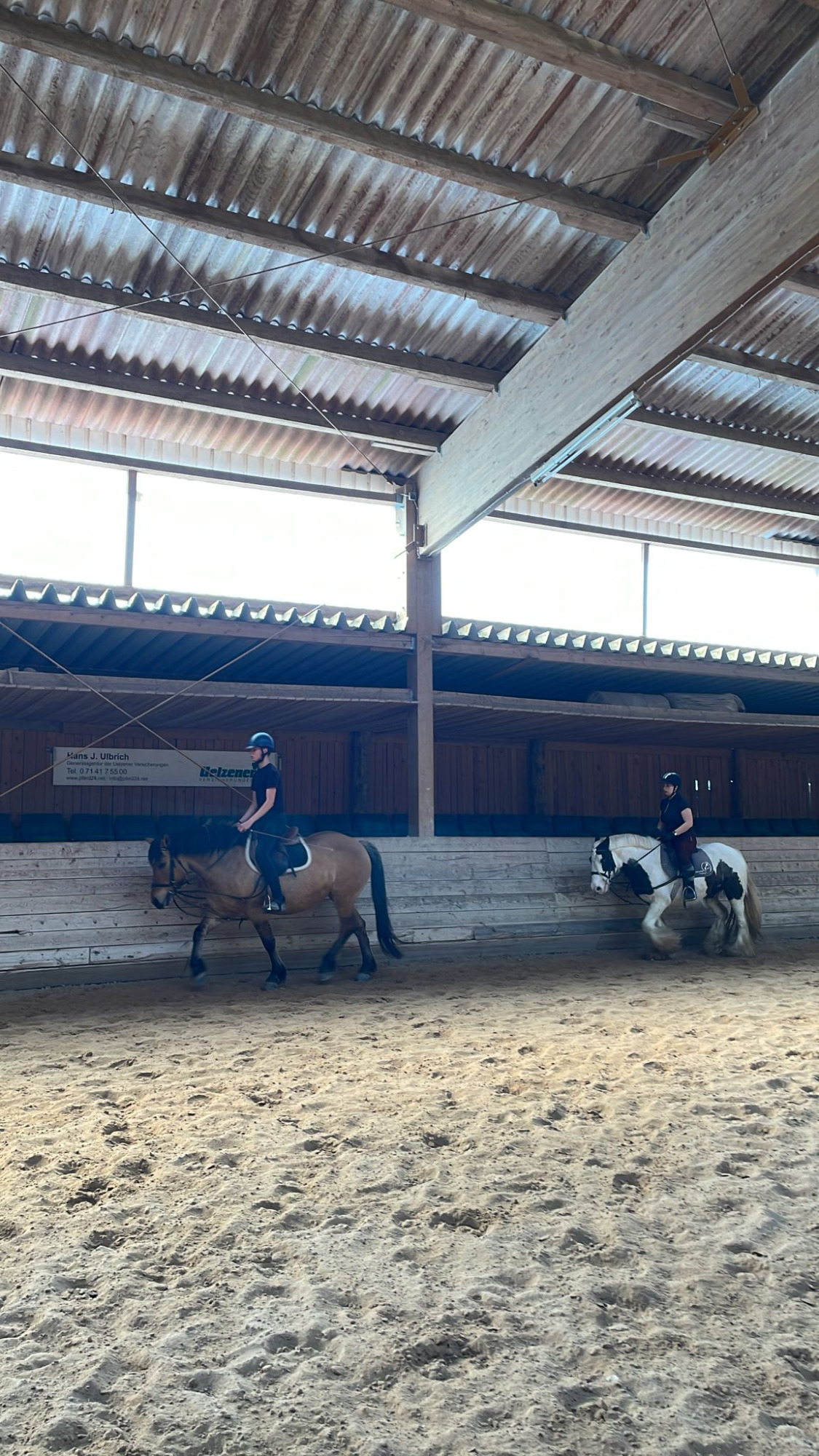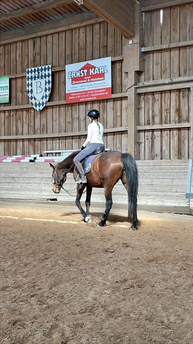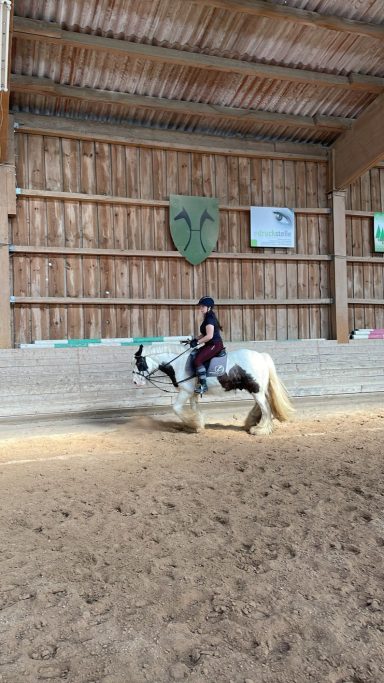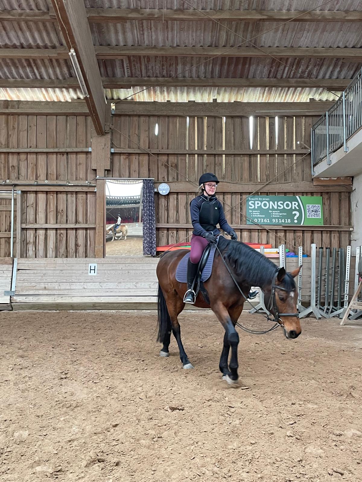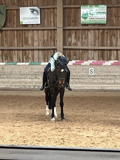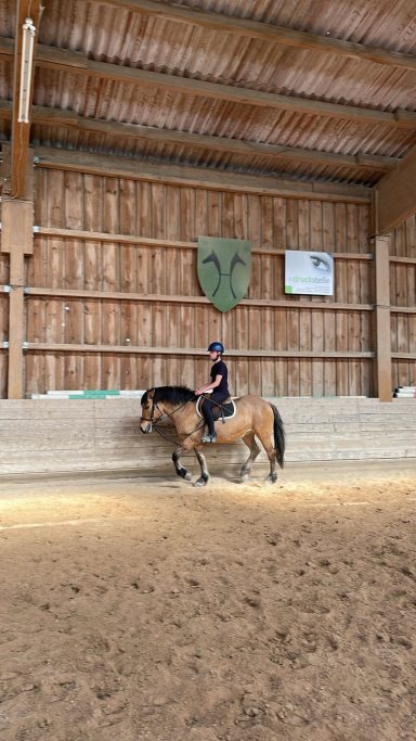 Um 9 Uhr fand die Longe auf Herkules statt. Die Kinder haben weiterhin das Leichttraben und Aussitzen geübt und dabei schöne Fortschritte gemacht. Auch das korrekte Abwenden wurde vertieft, sodass wir bereits kleine und große Zirkel reiten konnten. Das Durchparieren und anschließende Anreiten klappte bei allen richtig gut. Insgesamt war es eine sehr gelungene und erfolgreiche Stunde – sehr gut!