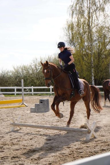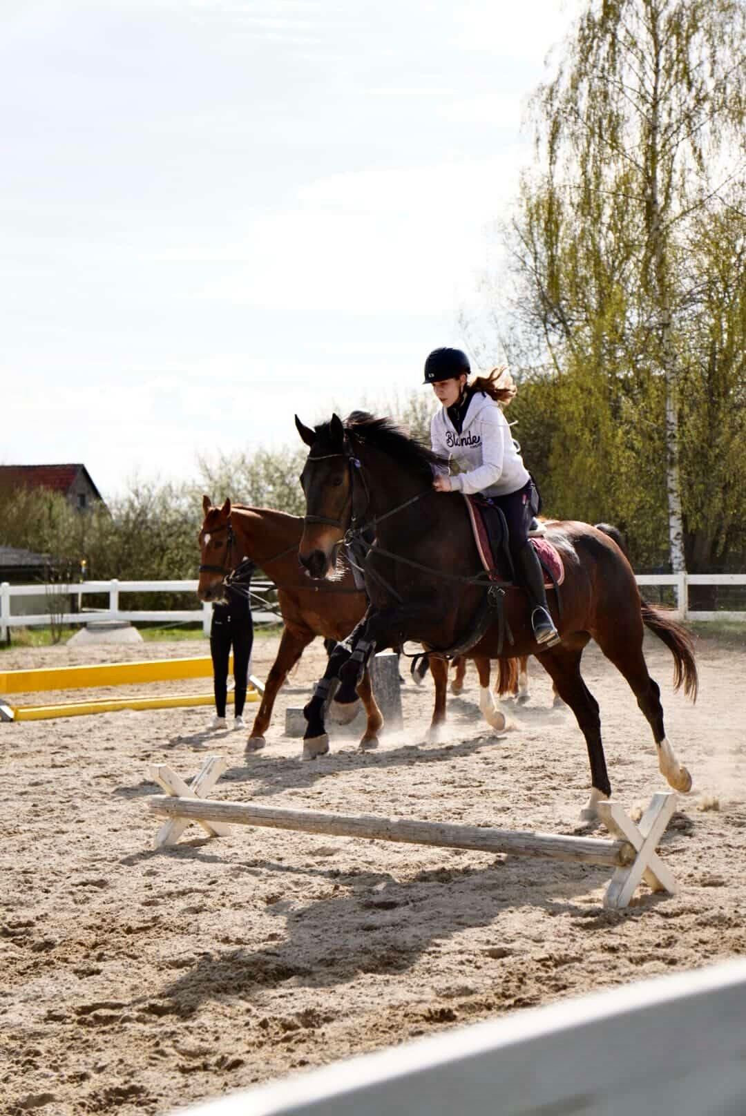 Die G2 durfte am Vormittag üben, im Trab und Galopp eine Stange mittig zu treffen. Diese Aufgabe wurde von allen souverän gemeistert.