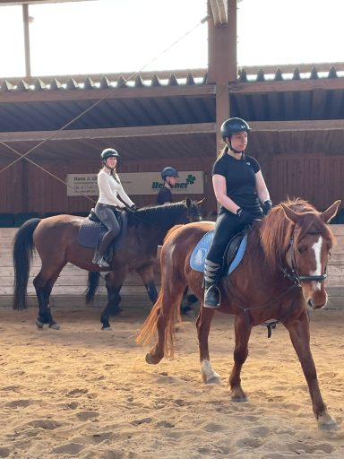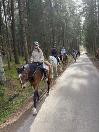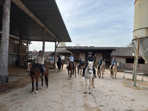 Der Ausritt der ST1 verlief ohne Zwischenfälle, und wir konnten sogar Rehe beobachten. Da alle ihre Pferde sehr gut im Griff hatten, war auch ein kontrollierter Galopp möglich.