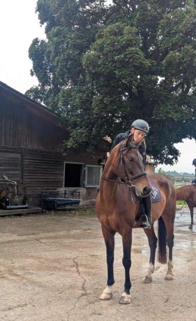 Der G4-Ausritt gestern begann etwas turbulent: Auf dem Maisfeld Richtung Wald war viel Betrieb, sodass sich die Gruppe spontan für eine andere Route entschied. Vorne fand Uniek die Situation zunächst etwas unheimlich, weshalb Moritz kurz die Führung übernahm. Schon bald kehrte jedoch wieder Ruhe ein, und der Ausritt konnte ohne weitere Anspannung weitergehen. Auch der Heimweg verlief problemlos – ein schöner Ausritt trotz aufregendem Start!